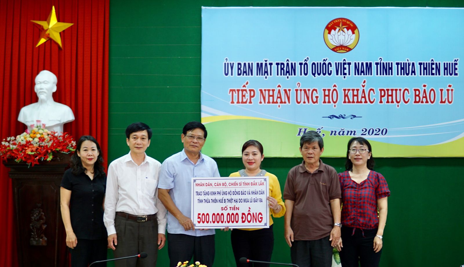 Chia sẻ khó khăn với Thừa Thiên Huế, Nhân dân, cán bộ và chiến sĩ tỉnh Đắk Lắk hỗ trợ 500 triệu đồng giúp người dân khắc phục thiệt hại do bão lụt, sớm ổn định cuộc sống.