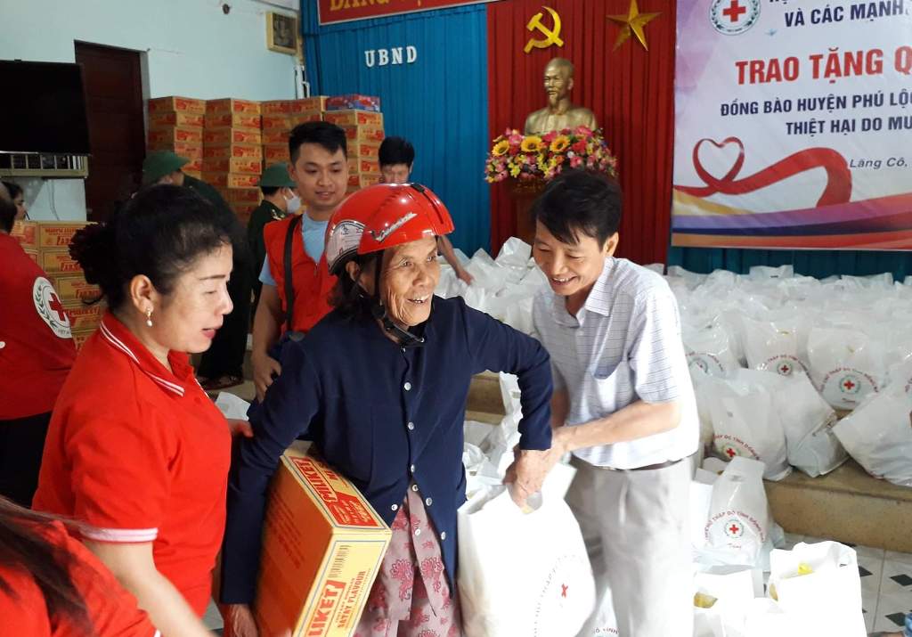 Ngoài 2,1 tỷ đồng, Trung ương Hội Chữ thập đỏ Việt Nam còn trao 30 phần quà cho cán bộ, hội viên Hội chữ thập đỏ tỉnh gặp khó khăn do thiệt hại của mưa bão; tặng 100 suất quà cho cá hộ dân nghèo tại xã Thủy Vân, thị xã Hương Thủy, mỗi phần quà 1 triệu đồng; thăm và hỗ trợ cho 2 gia đình nạn nhân bị chết tại thủy điện Rào Trăng, mỗi gia đình 3 triệu đồng; hỗ trợ 3 thuyền máy, xuồng, phao cho đội ứng phó thiên tai của tỉnh và của huyện Phong Điền, trung tâm bảo trợ xã hội tỉnh.