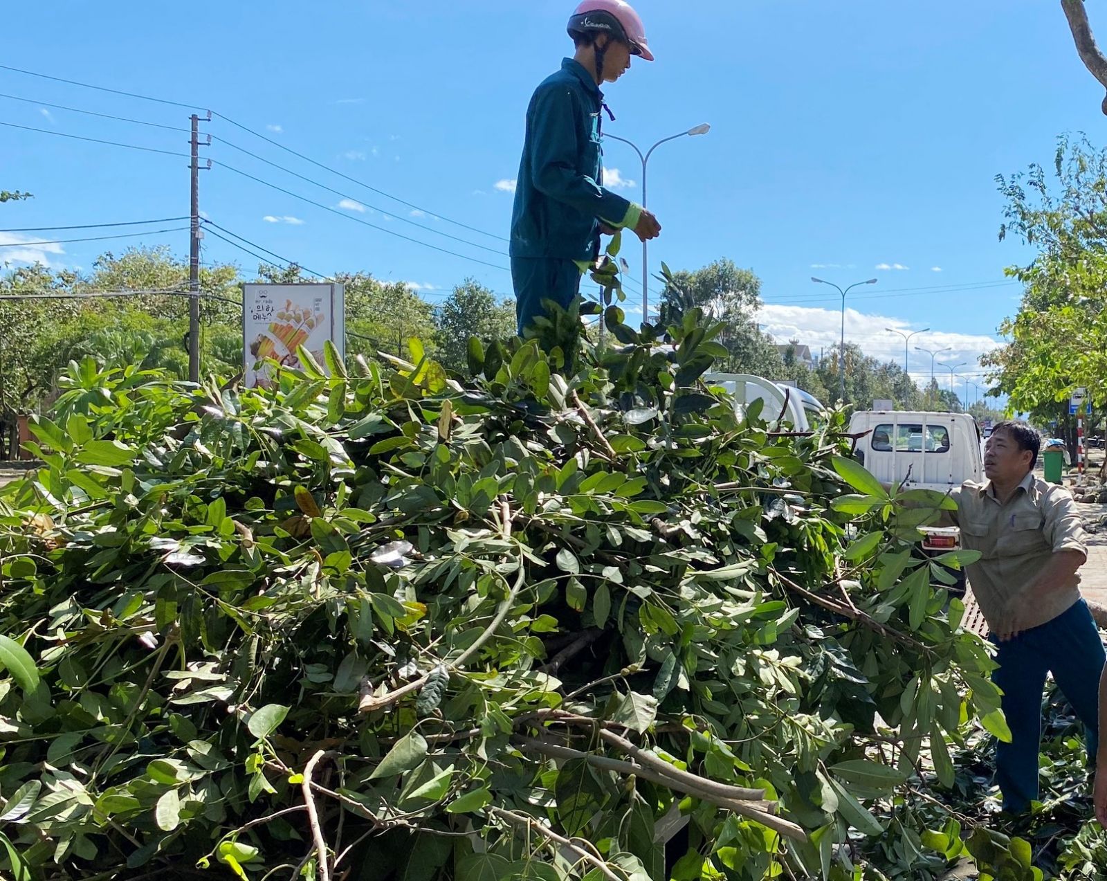 Thu gom cây, cành gãy, đổ do bão ở phường Phú Bài