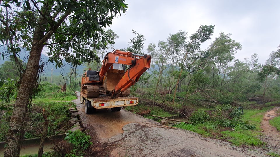 Xe múc được điều đến hiện trường phục vụ công việc cứu nạn cứu hộ