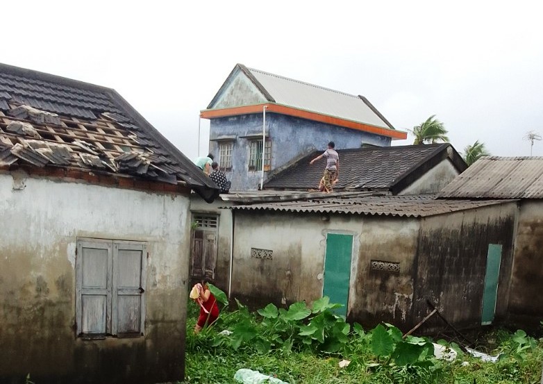 Người dân Vinh Hiền tranh thủ lợp lại nhà