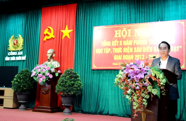 Thấm nhuần huấn thị của Bác, thời gian qua, các đơn vị trực thuộc Công an tỉnh đã cụ thể hóa phong trào bằng những hành động, việc làm cụ thể, lấy 6 điều Bác Hộ dạy làm nội dung cơ bản để thực hiện thắng lợi trong các phong trào thi đua. Nhờ vậy, 5 năm qua, Công an tỉnh đã có hơn 1.800 lượt tập thể, hơn 6.500 lượt cá nhân được các cấp khen thưởng và tặng danh hiệu thi đua. Công an tỉnh liên tục 5 năm liền được Bộ Công an tặng Cờ thi đua xuất sắc, 4 năm liên tục được tặng Cờ đua của UBND tỉnh...