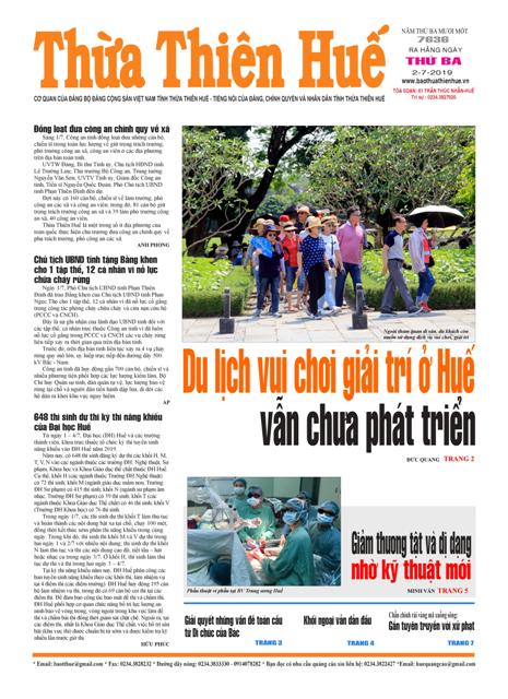 Trang nhất Báo Thừa Thiên Huế số 7636