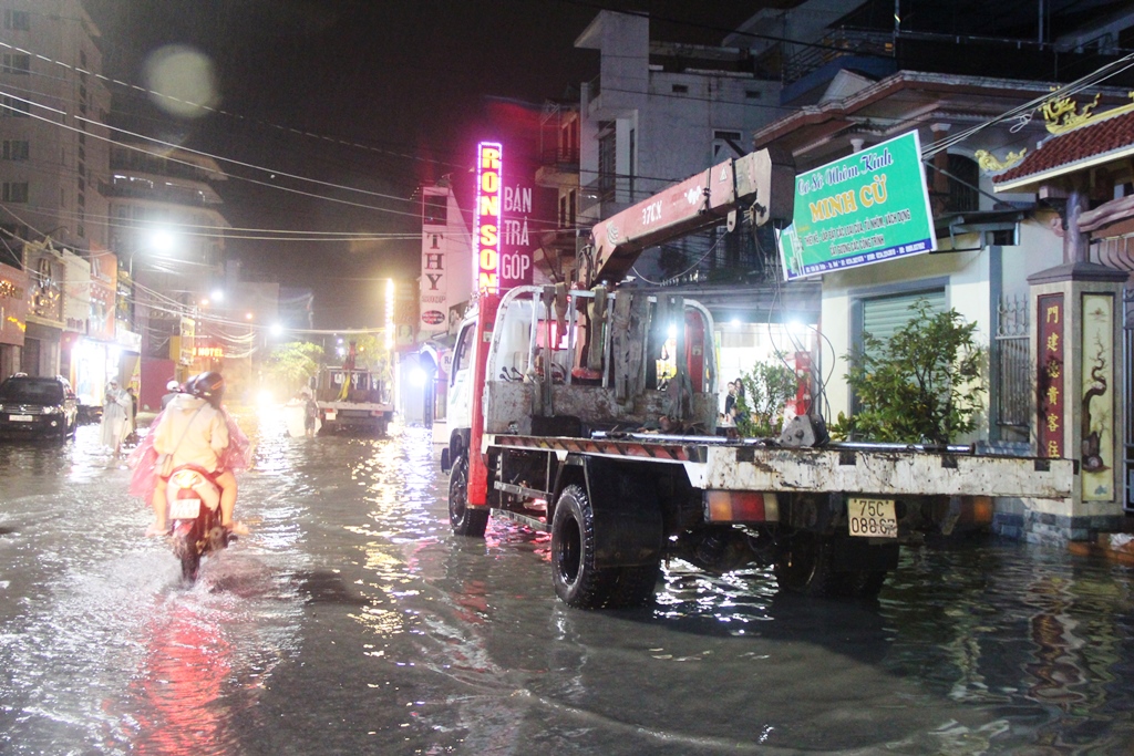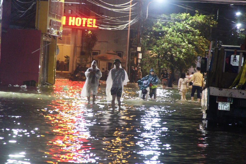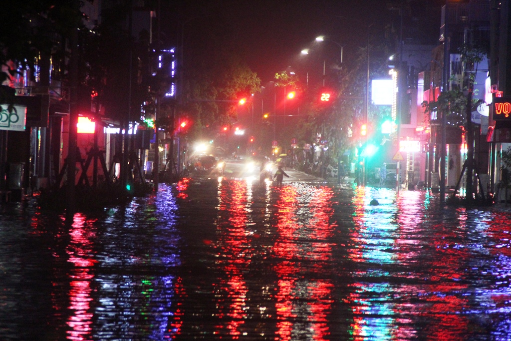 Đoạn ngập nặng nhất đó là điểm giao nhau với Tôn Đức Thắng và Trường Chinh. Tối 11/11, nước lũ lên chậm nhưng khiến nhiều tuyến đường trung tâm TP. Huế ngập lênh láng trong nước như: Dương Văn An, Hà Huy Tập, Tố Hữu, Bà Triệu, Phan Châu Trinh, Phan Đình Phùng, Hải Triều… Nước ngập từ 0,3 – 0,5m, có nơi sâu hơn khiến cuộc sống và việc buôn bán, kinh doanh của người dân bị đảo lộn. Phía bờ bắc, các tuyến đường thấp trũng nước đã tràn đường, có nơi lực lượng chức năng phải chăng dây cấm di chuyển và trực cảnh báo nguy hiểm. Nhiều người có xe ô tô cũng tranh thủ di chuyển xe đến chỗ cao ráo, lo ngại nước sẽ lên nhanh trong đêm, không kịp trở tay.