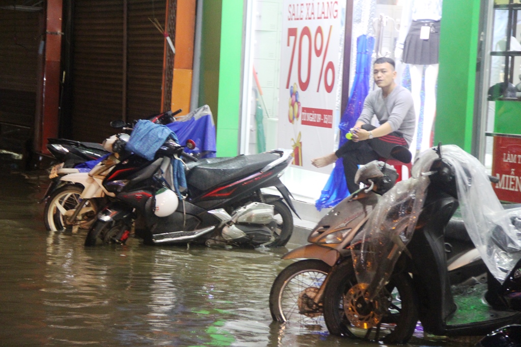 Tình trạng nước ngập ảnh hưởng đến việc buôn bán của nhiều cửa hàng
