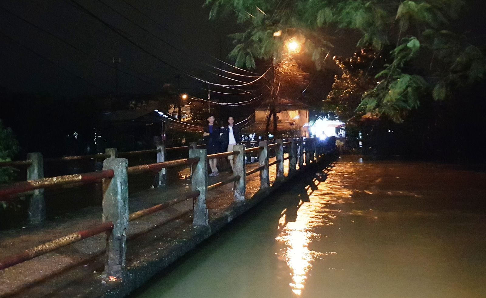Mực nước khuya nay dự kiến sẽ tràn qua mặt cầu Vạn Xuân - Kim Long, một số hộ dân gần đó kê dọn đồ đạc từ chiều