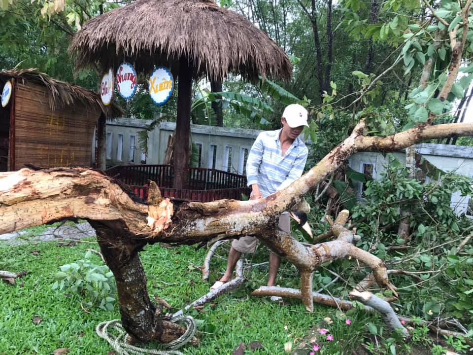 Chặt cây bị gãy đổ do mưa lũ