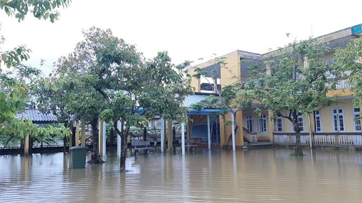 Trường THCS Phong Bình bị ngập lụt, khiến học sinh phải nghỉ học từ ngày 4/9