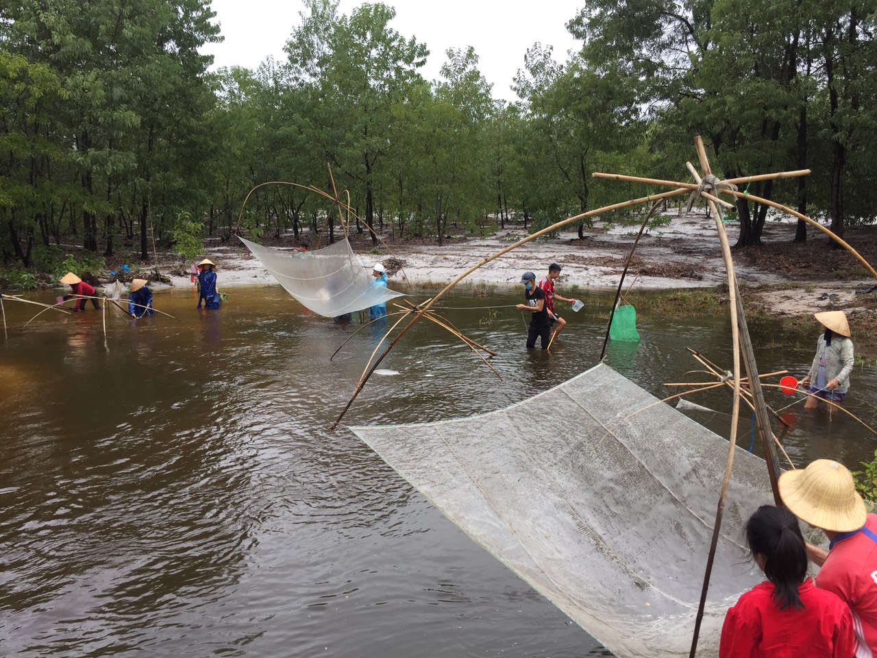 Người dân xã Phong Hòa bắt cá mùa lũ