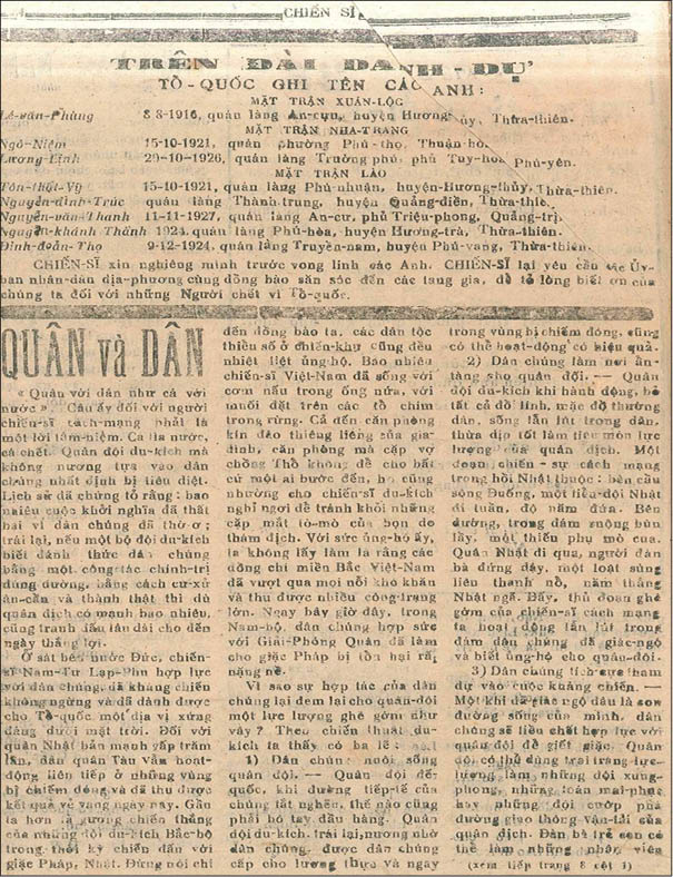 Trong quá trình nghiên cứu lịch sử báo chí, chúng tôi đã tiếp cận đủ 39 số báo Chiến Sĩ và gặp ở đây rất nhiều Vệ Quốc Quân được vinh danh TRÊN ĐÀI DANH DỰ, họ là những chiến sĩ đã hy sinh lúc còn rất trẻ (đa số họ chưa lập gia đình).