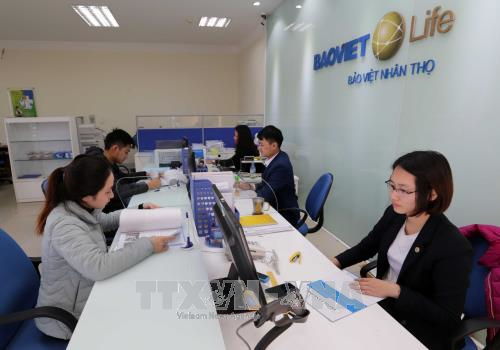 Khách hàng giao dịch tại Công ty Bảo hiểm Lai Châu. Ảnh: Trần Việt/TTXVN