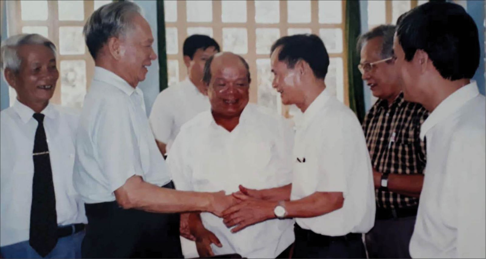 Ông Võ Nguyên Quảng (thứ 3 bên trái qua) gặp Đại tướng Lê Đức Anh trong dịp Đại tướng thăm tỉnh Thừa Thiên Huế năm 2000. Ảnh: Tư liệu Văn phòng Tỉnh ủy