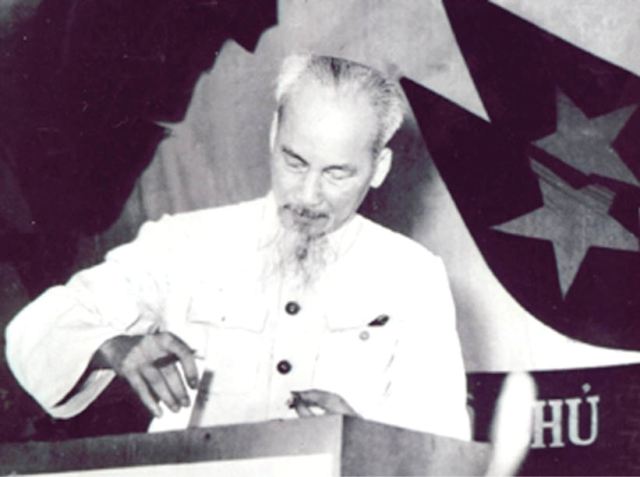 Chủ tịch Hồ Chí Minh thực hiện quyền công dân. Ảnh: Tư liệu