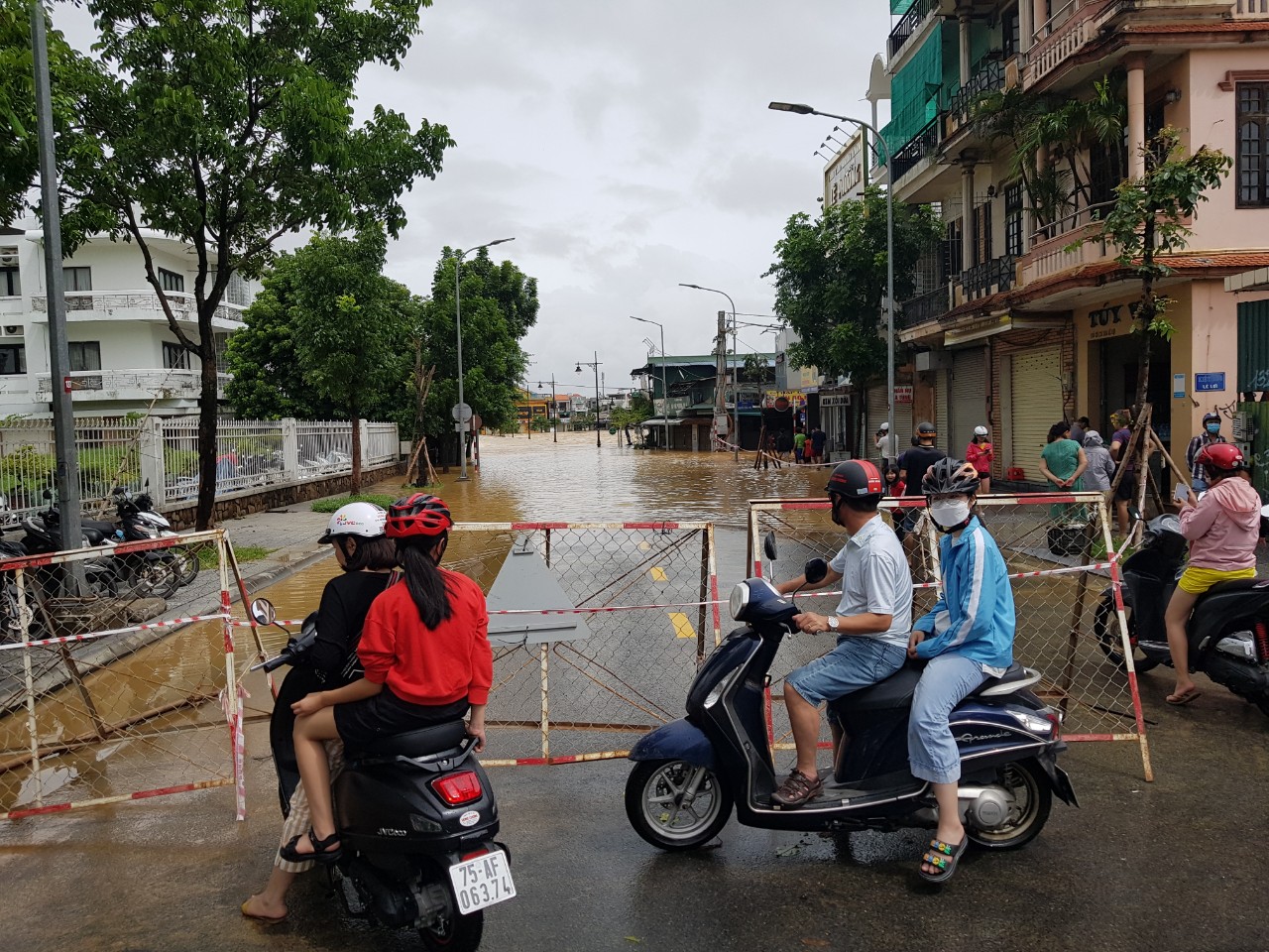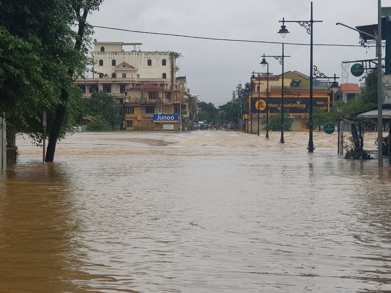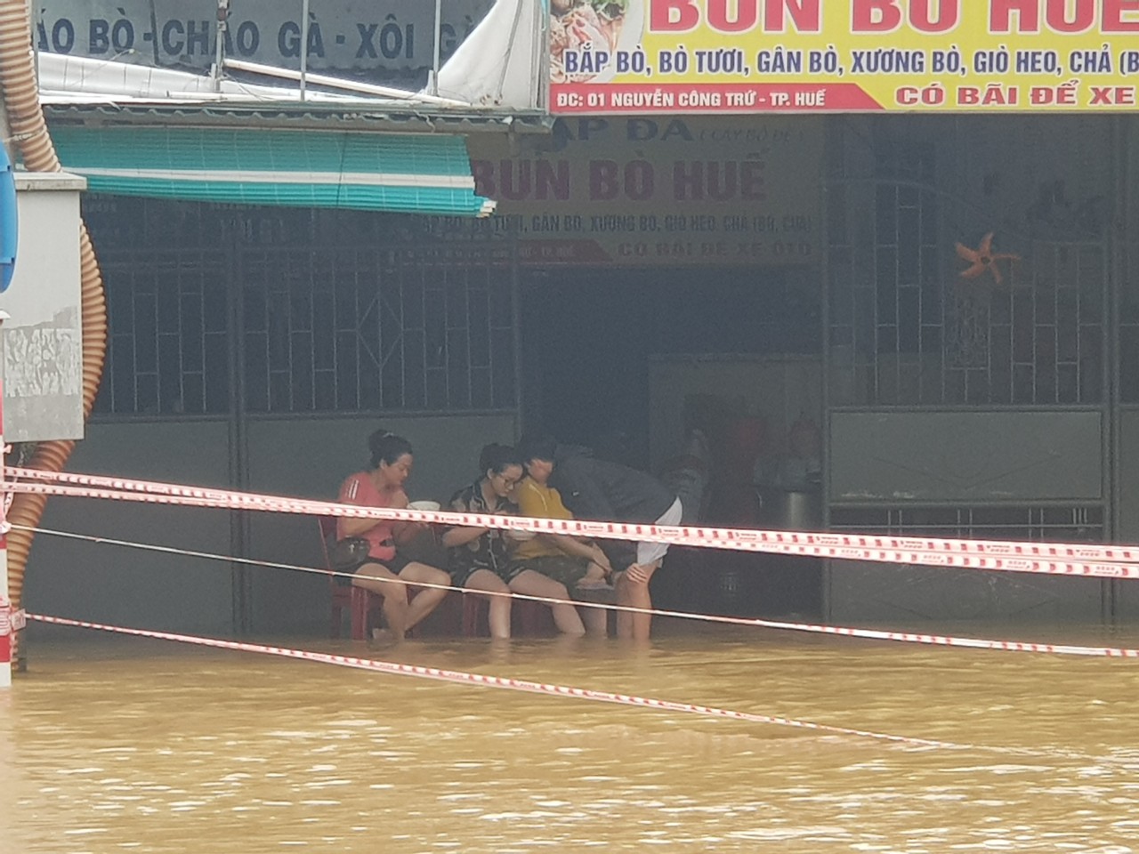 Tại nhiều tuyến đường trung tâm TP. Huế như Bà Triệu, Nguyễn Huệ, Hùng Vương, Phan Đình Phùng, Phan Chu Trinh, Võ Thị Sáu, Chu Văn An, Nguyễn Công Trứ… ngập nặng. Có đoạn ngập sâu đến ngang bụng. Việc đi lại ở những tuyến đường này được thay bằng thuyền.