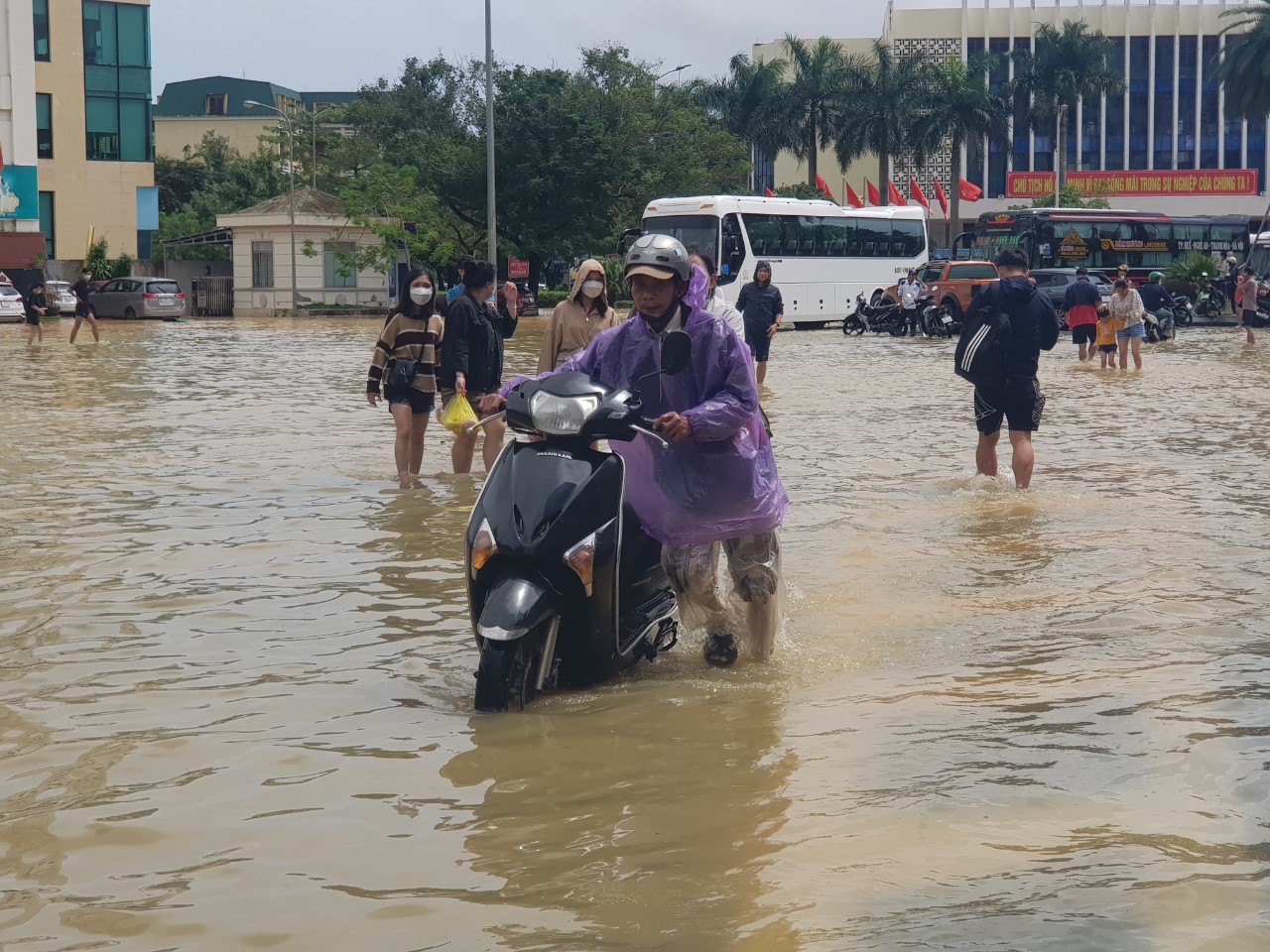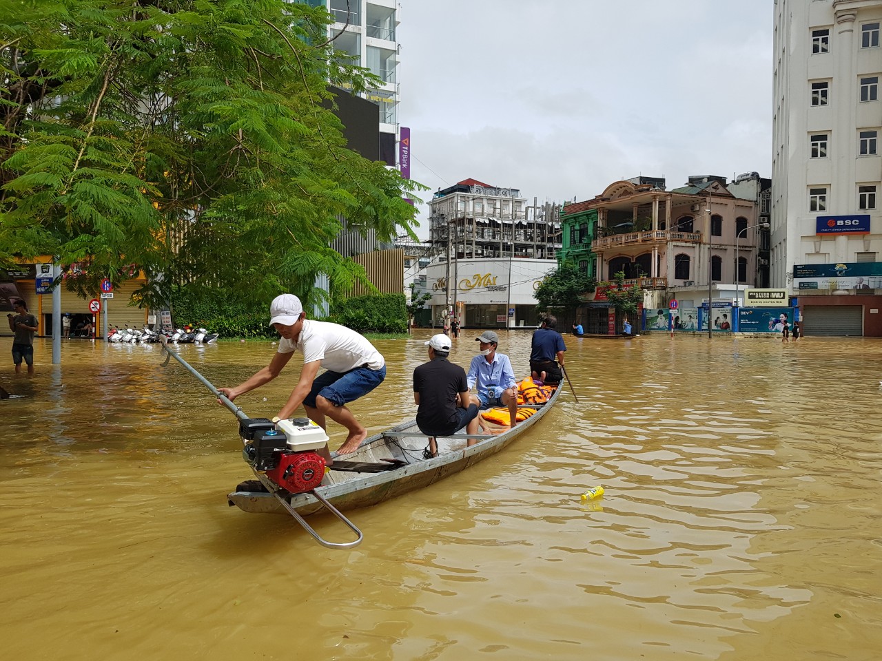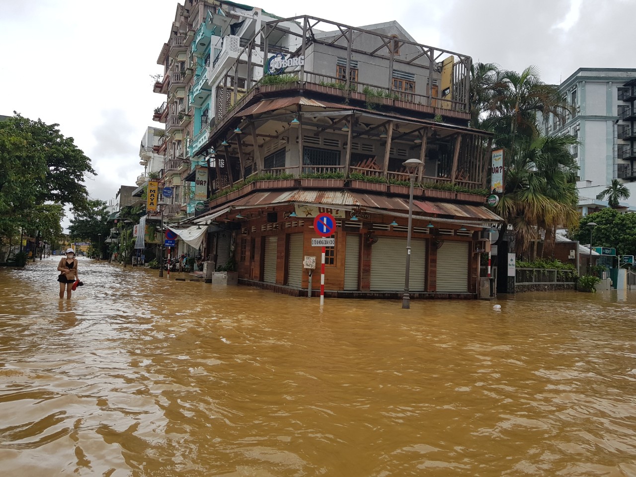 Tại nhiều tuyến đường trung tâm TP. Huế như Bà Triệu, Nguyễn Huệ, Hùng Vương, Phan Đình Phùng, Phan Chu Trinh, Võ Thị Sáu, Chu Văn An, Nguyễn Công Trứ… ngập nặng. Có đoạn ngập sâu đến ngang bụng. Việc đi lại ở những tuyến đường này được thay bằng thuyền.