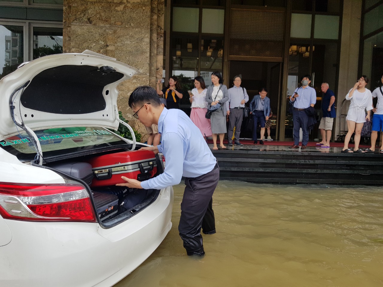Người điều khiển ô tô, xe máy đi vào những tuyến đường nói trên phần nhiều bị chết máy. Các đoàn du khách đang đi công tác, du lịch tại Huế cũng bị mắc kẹt nhưng cho rằng đã có một trải nghiệm thú vị khi biết đến “đặc sản” mưa lụt của vùng đất Cố đô.
