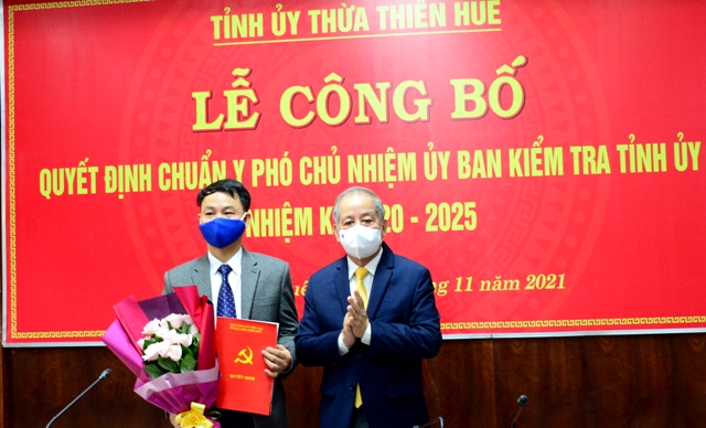 Tại buổi Lễ, Ban Tổ chức Tỉnh ủy đã công bố Quyết định 386-QĐNS/TW, ngày 12/11/2021 của Ban Bí thư về việc chuẩn y ông Nguyễn Quang Huy, Ủy viên UBKT Tỉnh ủy, Trưởng phòng Tổng hợp, Cơ quan UBKT Tỉnh ủy giữ chức Phó Chủ nhiệm UBKT Tỉnh ủy Thừa Thiên Huế, nhiệm kỳ 2020 - 2025.