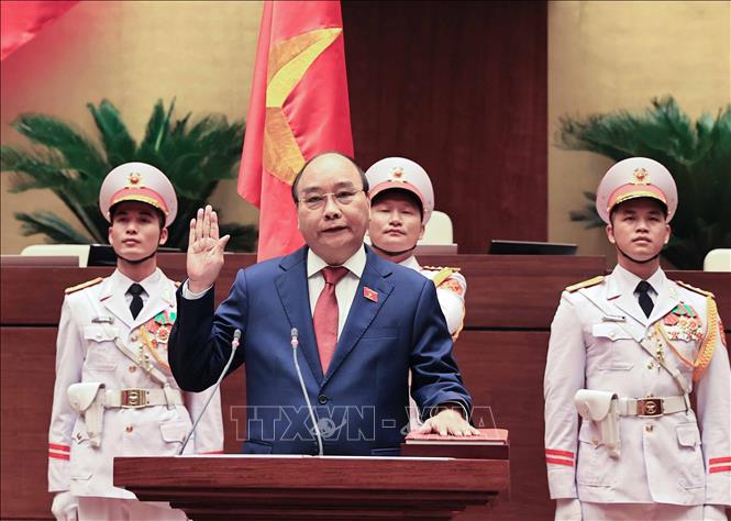 Chủ tịch nước Nguyễn Xuân Phúc tuyên thệ nhậm chức. Ảnh: Thống Nhất/TTXVN