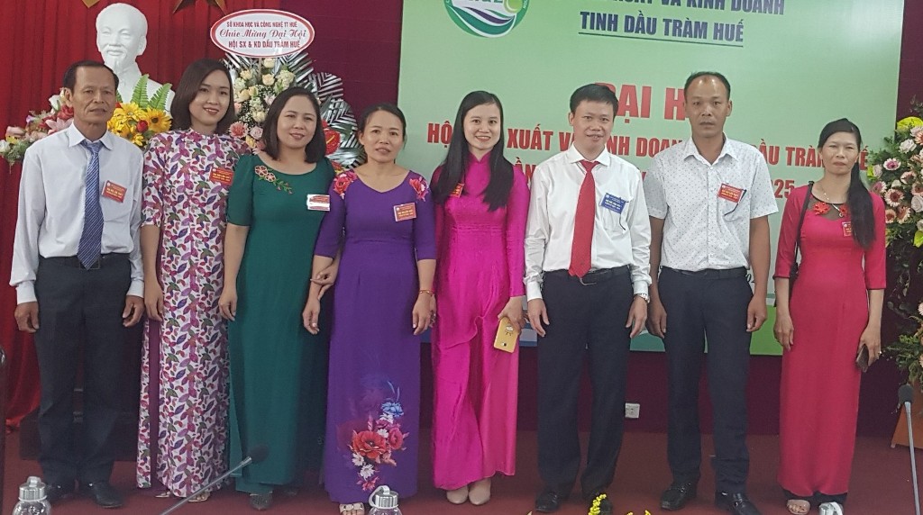 Đại diện BCH Hội sản xuất và kinh doanh dầu tràm Huế lần thứ I ra mắt sau khi kết thúc Đại hội