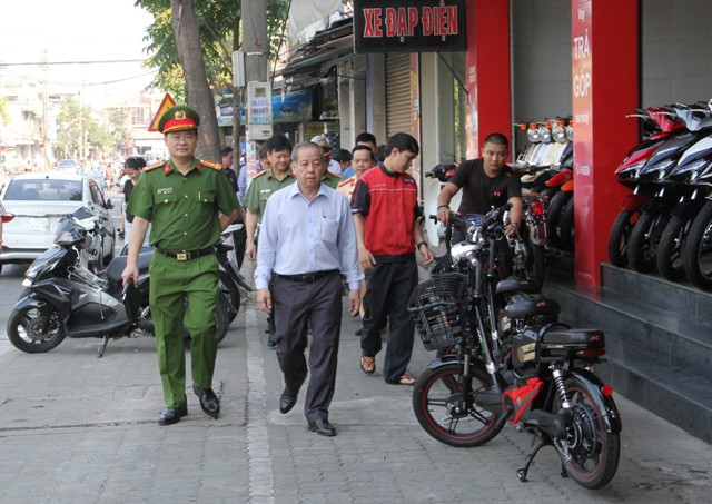 Chủ tịch UBND tỉnh Phan Ngọc Thọ cùng Phó Giám đốc Công an tỉnh Nguyễn Thanh Tuấn kiểm tra tình hình trật tự đô thị trên địa bàn TP. Huế