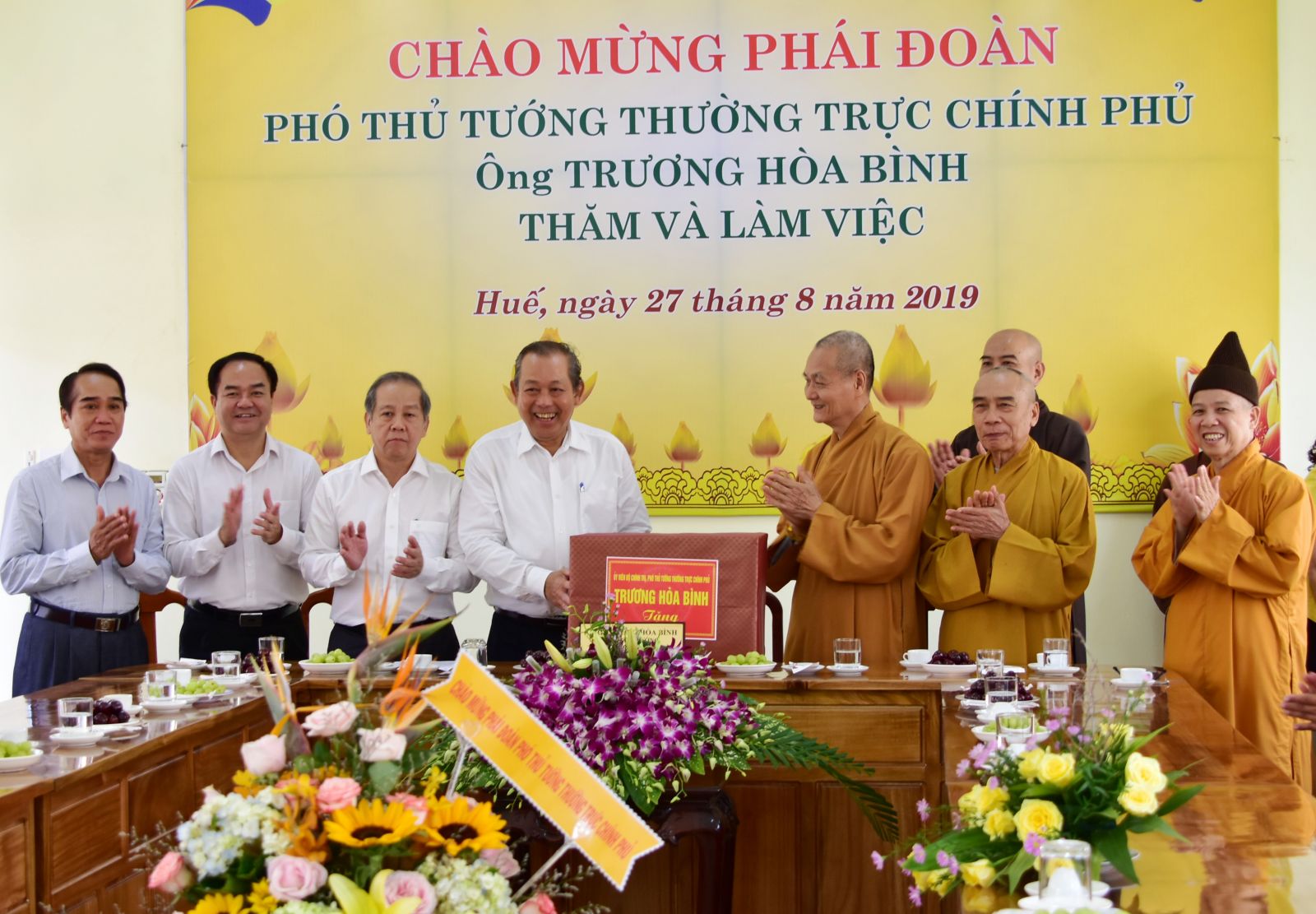 Phó Thủ tướng Thường trực Trương Hòa Bình đến thăm và tặng quà tại Học Viện Phật giáo Việt Nam tại Huế