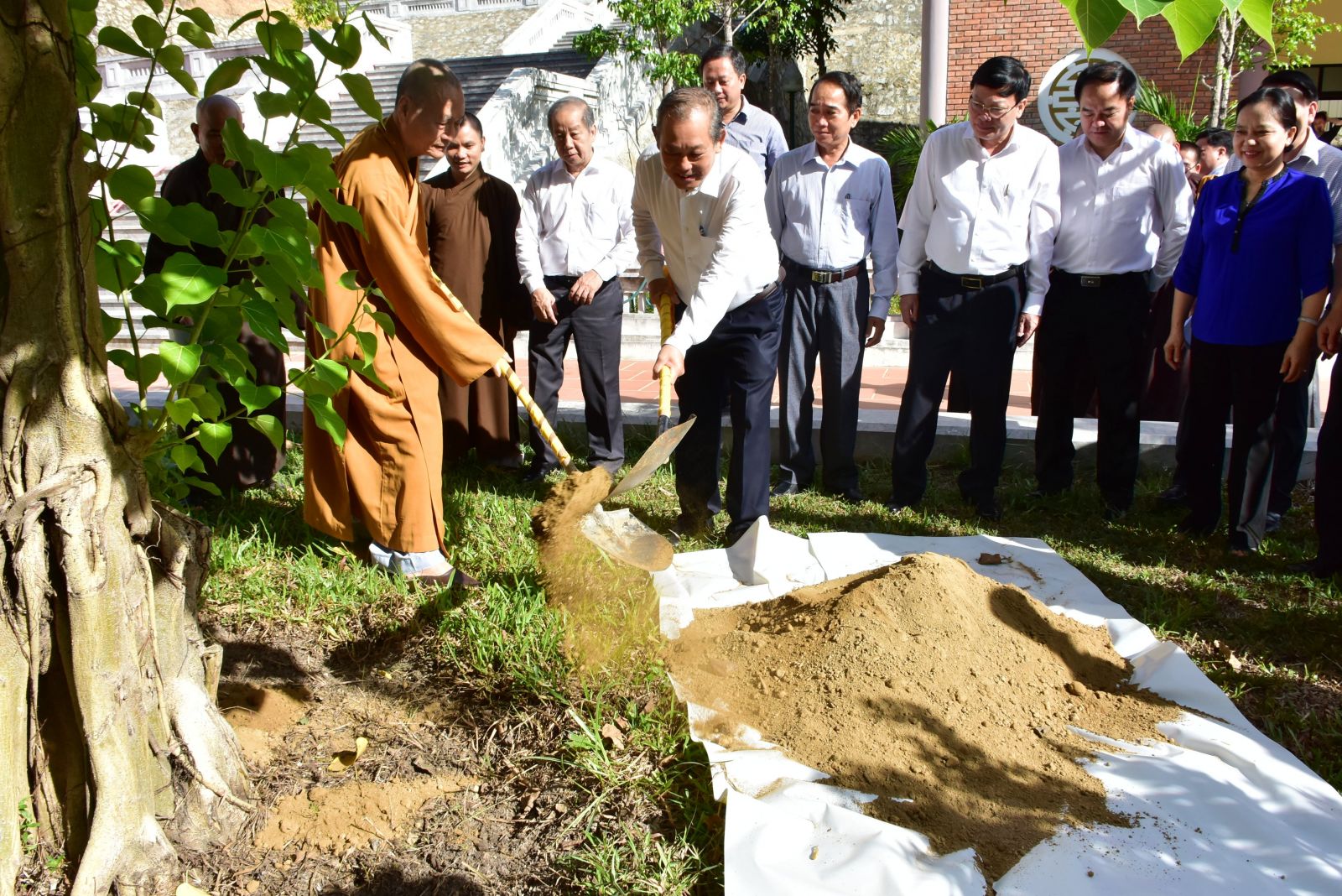 Phó Thủ tướng Thường trực Trương Hòa Bình trồng cây lưu niệm tại Học viện Phật giáo Việt Nam tại Huế