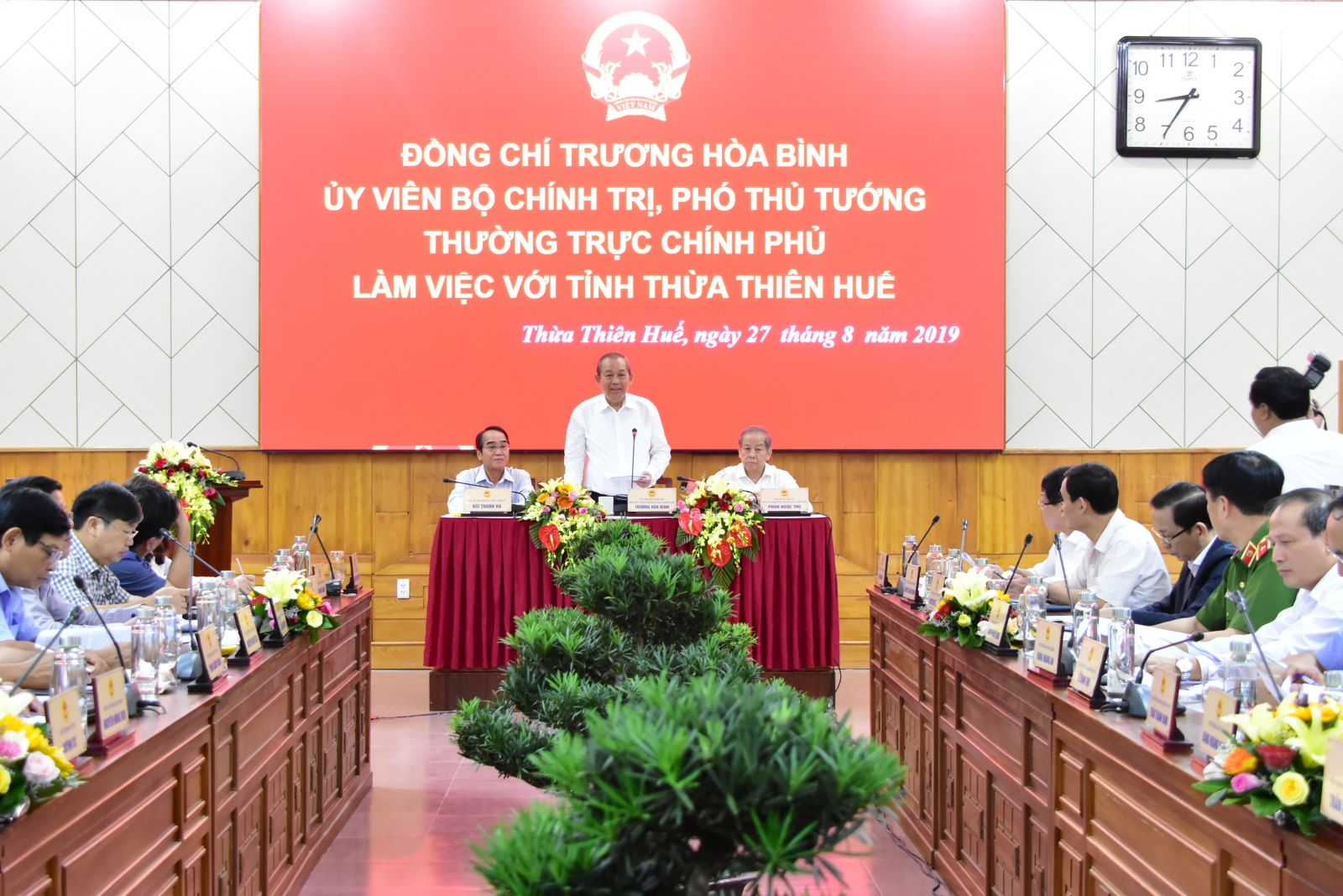 Trong chương trình làm việc tại Thừa Thiên Huế, Phó Thủ tướng Thường trực Chính phủ Trương Hòa Bình đã đến thắp hương tưởng niệm cố Hòa thượng Thích Chơn Thiện tại Tổ đình Tường Vân; thăm, tặng quà tại Học viện Phật giáo Việt Nam tại Huế; tặng quà cho nạn nhân chất độc da cam tại huyện A Lưới; thăm HTX Lâm nghiệp bền vững Hòa Lộc (xã Lộc Bổn, huyện Phú Lộc); thăm Trung tâm Giám sát, điều hành đô thị thông minh của tỉnh.