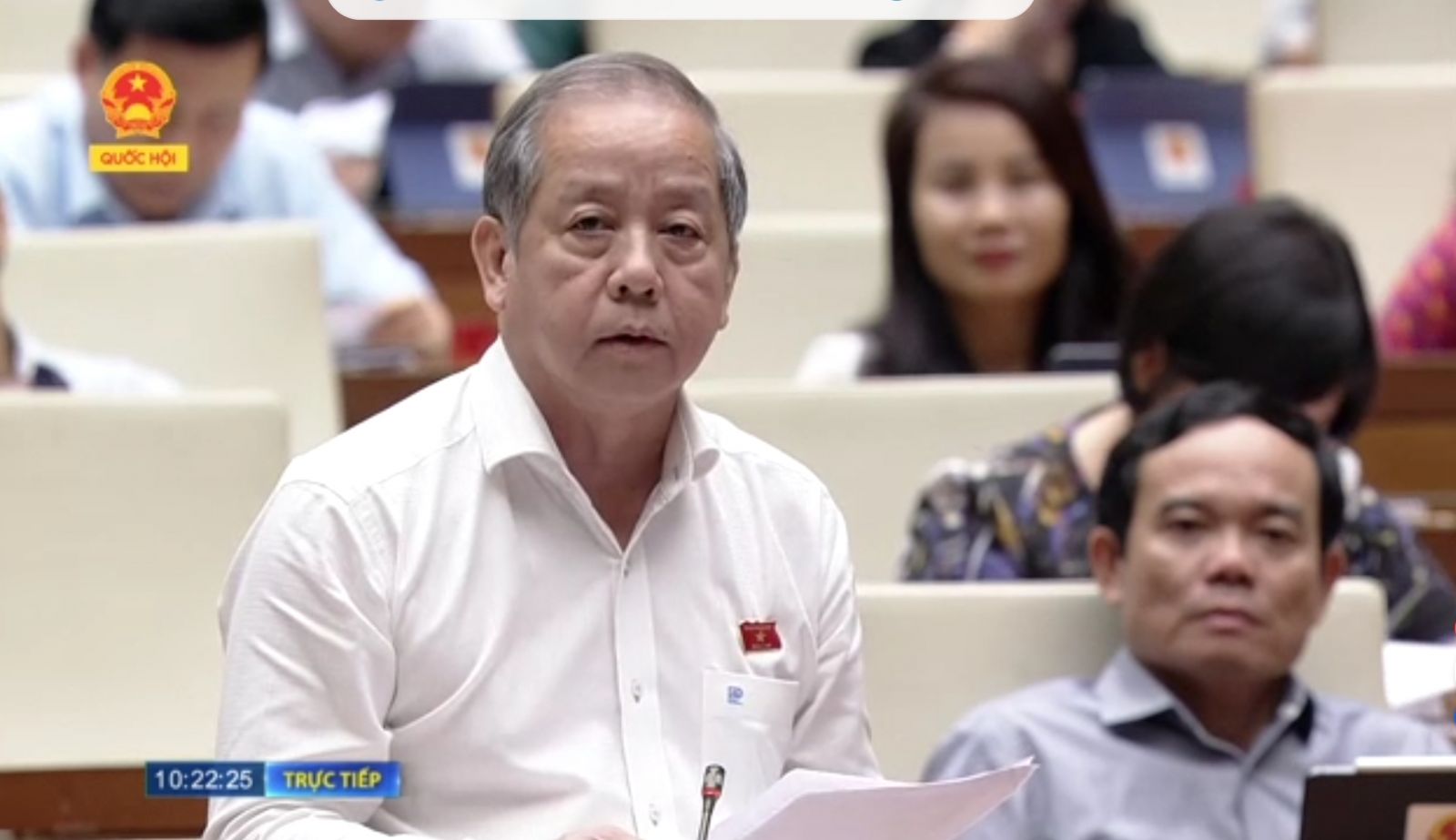 Phó Bí thư Tỉnh ủy, Chủ tịch UBND tỉnh, Trưởng đoàn ĐBQH tỉnh Phan Ngọc Thọ phát biểu trước Quốc hội sáng 15/6. (Ảnh chụp màn hình)