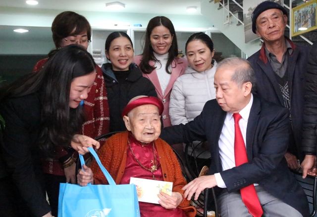 Phó Bí thư Thường trực Tỉnh ủy Phan Ngọc Thọ và Hội LHPN tỉnh tặng quà tết, chúc thọ Nghệ nhân dân gian Công Tôn Nữ Trí Huệ
