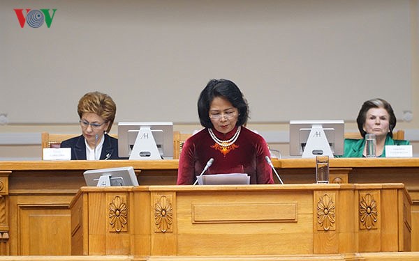 Phó Chủ tịch nước nhấn mạnh, Việt Nam đang ngày càng chú trọng thể chế hoá việc thực hiện bình đẳng giới và trao quyền cho phụ nữ; đặt ra các mục tiêu cụ thể trong lĩnh vực này, trong đó có tăng cường sự tham gia của phụ nữ vào các vị trí quản lý, lãnh đạo, giảm khoảng cách giới trong các lĩnh vực kinh tế, lao động, việc làm, tạo cơ hội nhiều hơn cho phụ nữ nghèo ở nông thôn, phụ nữ dân tộc thiểu số, nâng cao chất lượng nguồn nhân lực nữ, bảo đảm bình đẳng giới trong các lĩnh vực và trong đời sống gia đình.
