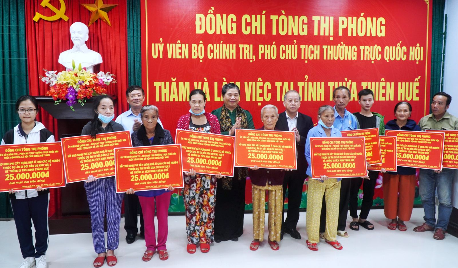Trước đó, Phó Chủ tịch Quốc hội tặng 20 suất quà, mỗi suất trị giá 25 triệu đồng cho các hộ nghèo thuộc dự án di dời dân cư khu vực I, hệ thống kinh thành Huế; Công đoàn Văn phòng Quốc hội cũng hỗ trợ bà con bị ảnh hưởng do mưa lũ 50 triệu đồng.