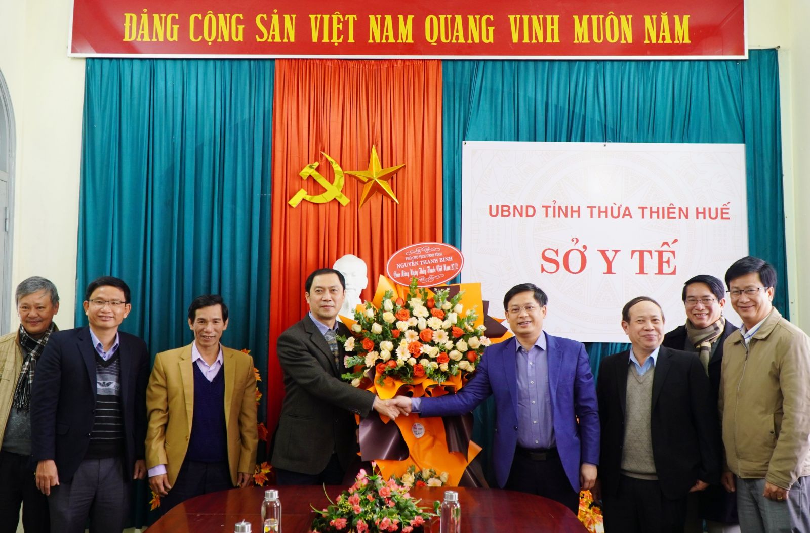 Đến thăm lãnh đạo, cán bộ, nhân viên Sở Y tế, Phó Chủ tịch UBND tỉnh Nguyễn Thanh Bình đã hỏi thăm sức khỏe và gửi lời chúc tốt đẹp nhất đến đội ngũ cán bộ, y bác sĩ nhân kỷ niệm ngày Thầy thuốc Việt Nam 27/2. Phó Chủ tịch UBND tỉnh biểu dương những kết quả, cống hiến vừa qua của tất cả cán bộ, y bác sĩ và gửi lời chúc sức khỏe đến toàn thể cán bộ, nhân viên ngành y tế, chúc toàn ngành luôn hoàn thành xuất sắc nhiệm vụ mà Đảng, Nhà nước giao phó và thực hiện tốt sứ mệnh cao cả của người thầy thuốc trong chăm sóc sức khoẻ cộng đồng.
