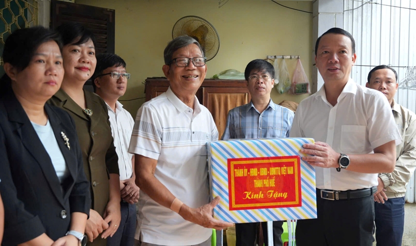 * Sáng cùng ngày, Chủ tịch UBND thành phố Huế Phan Thiên Định đã đến thăm và tặng quà cho gia đình ông Hồ Minh Thơ, trú tại số 11/129 An Dương Vương, phường An Cựu, là thương binh hạng 3/4, nạn nhân chất độc da cam.