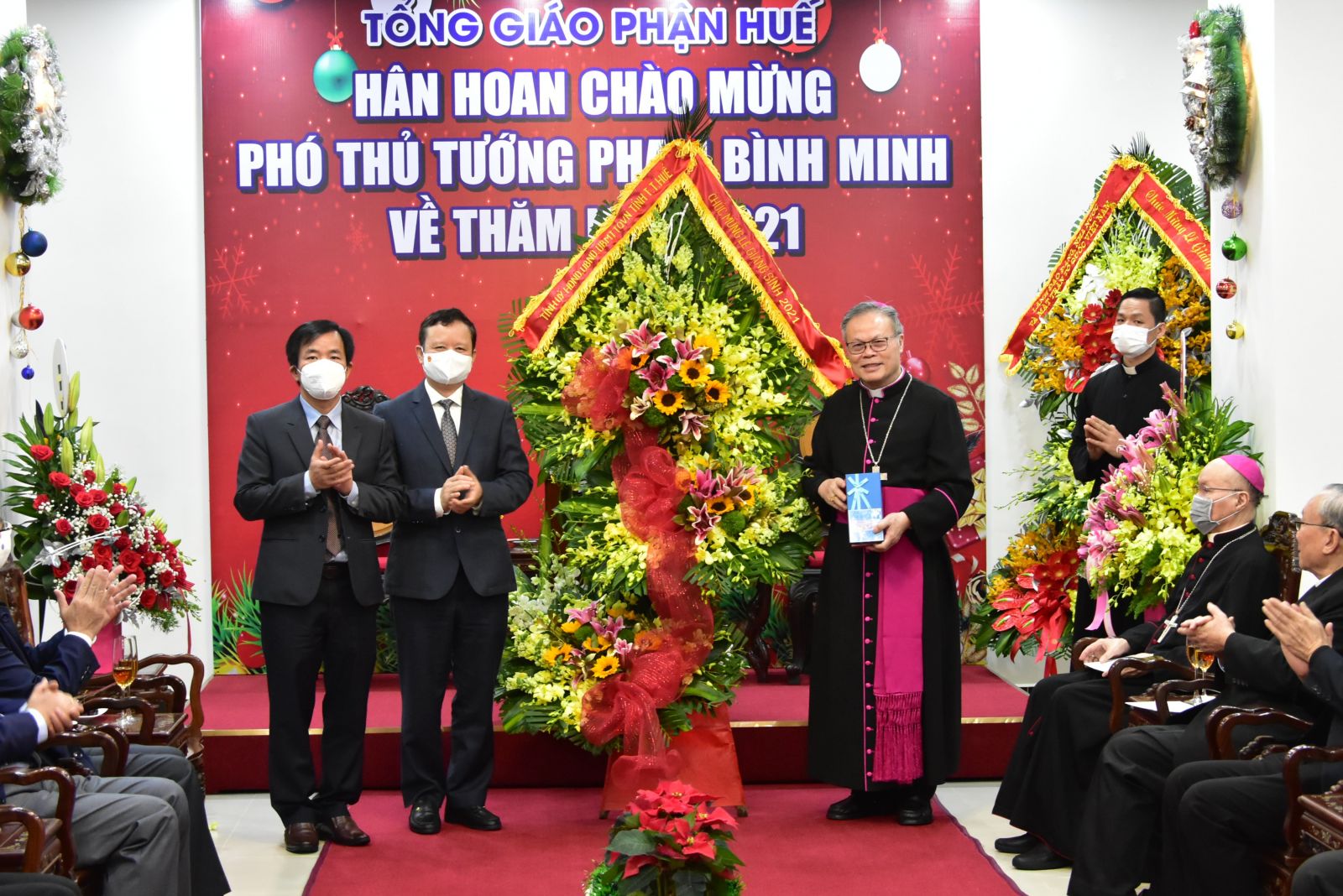 Thay mặt lãnh đạo Đảng, Nhà nước, Phó Thủ tướng Thường trực Chính phủ Phạm Bình Minh gửi lời chào trân trọng, lời thăm hỏi ân cần và lời chúc mừng tốt đẹp nhất nhân dịp Giáng sinh và năm mới 2022 tới Tổng Giám mục Nguyễn Chí Linh, linh mục, tu sĩ và đồng bào Công giáo. Phó Thủ tướng đánh giá cao những đóng góp của các vị linh mục, tu sĩ, đồng bào giáo dân thời gian qua, cùng cấp ủy, chính quyền, hệ thống chính trị và nhân dân cả nước phòng chống dịch bệnh, tích cực tham gia các hoạt động chia sẻ khó khăn với đồng bào cả nước, thể hiện tinh thần đoàn kết, tương thân tương ái, trách nhiệm với đất nước trong giai đoạn khó khăn, dịch bệnh.