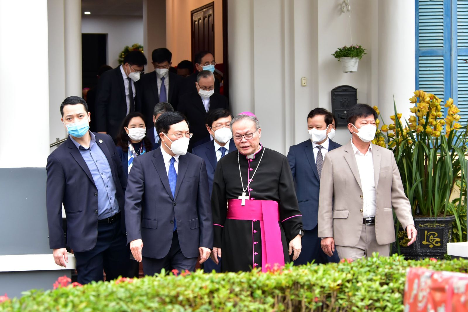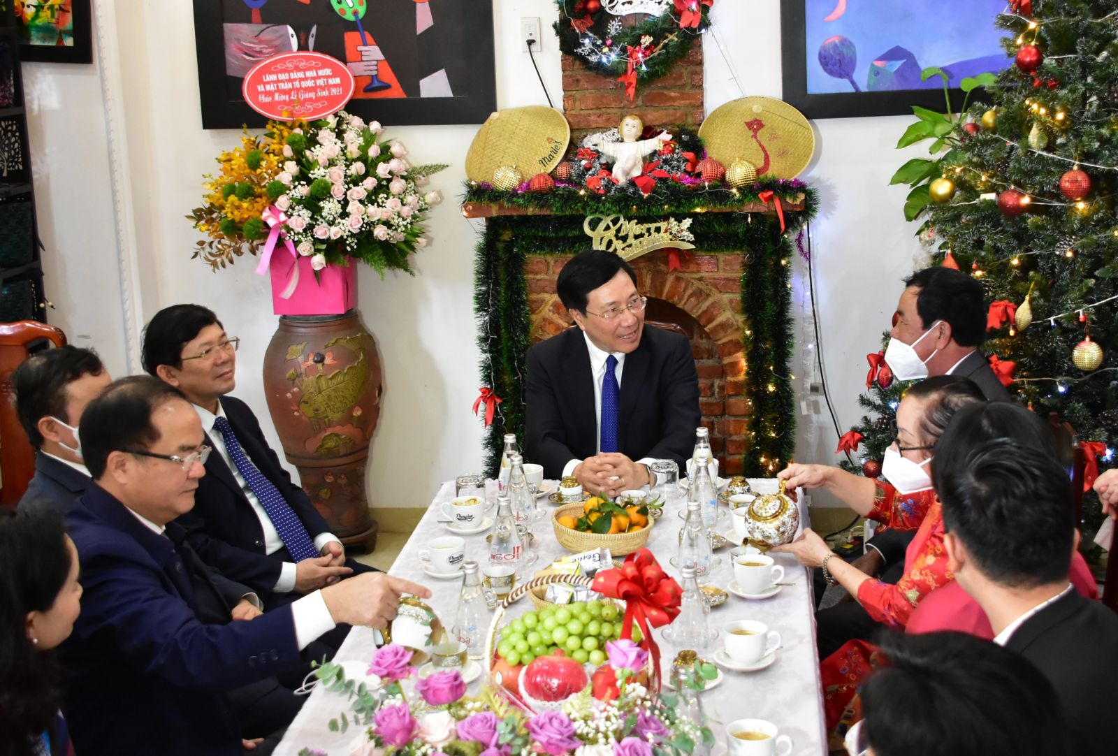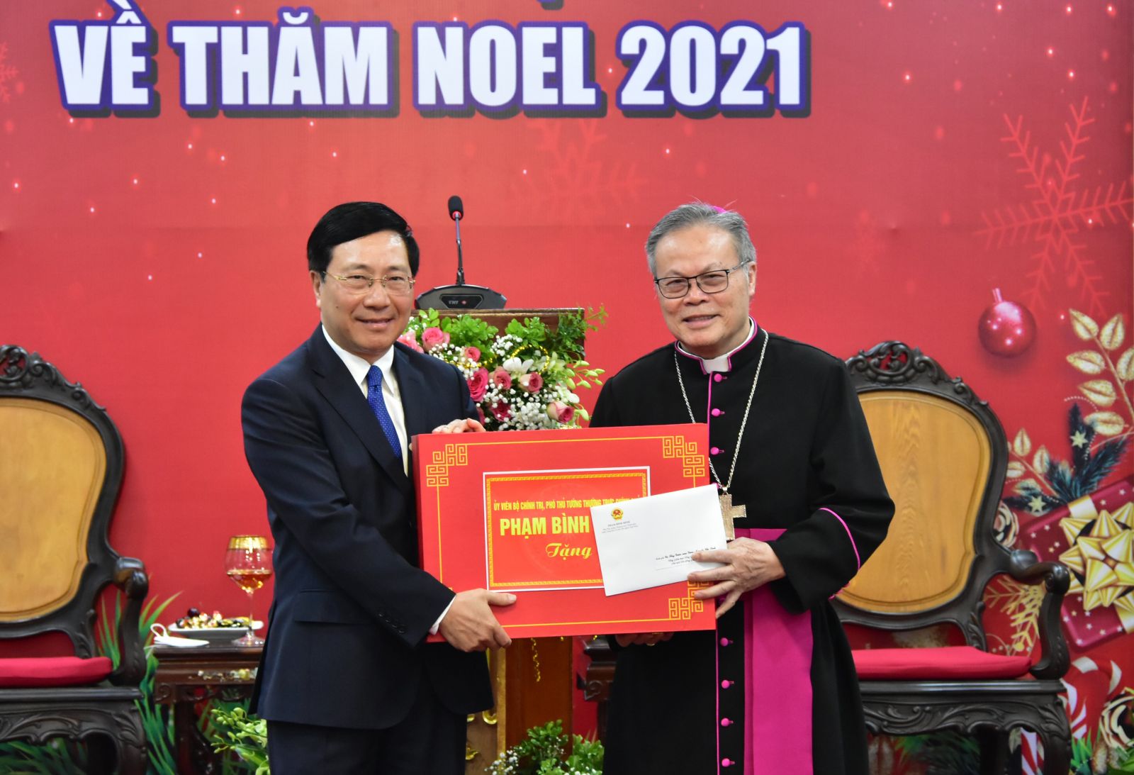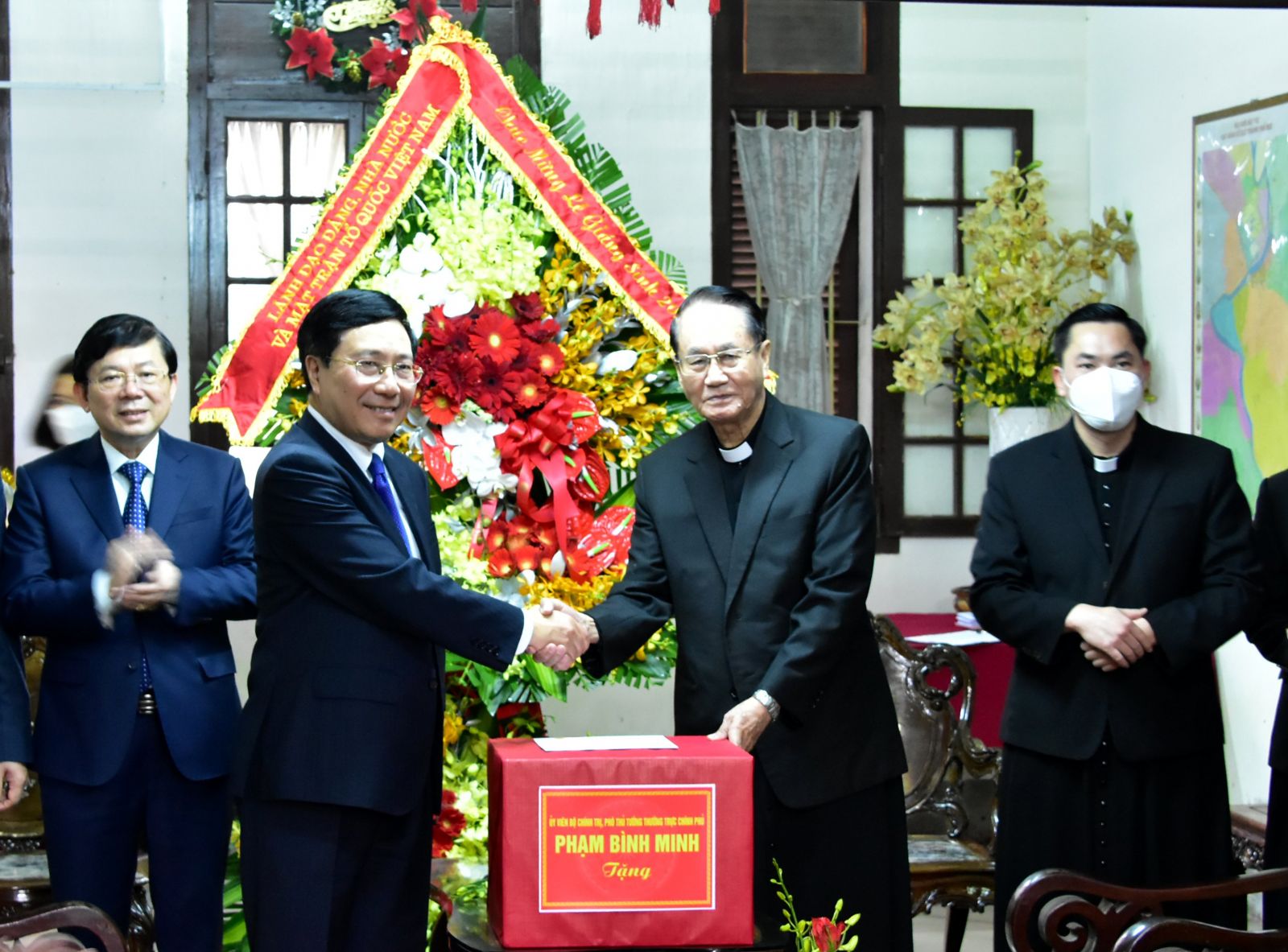 Phó Thủ tướng Thường trực Chính phủ Phạm Bình Minh chúc mừng Giáng sinh và năm mới 2022 tới Tổng Giám mục Nguyễn Chí Linh, linh mục, tu sĩ và đồng bào Công giáo