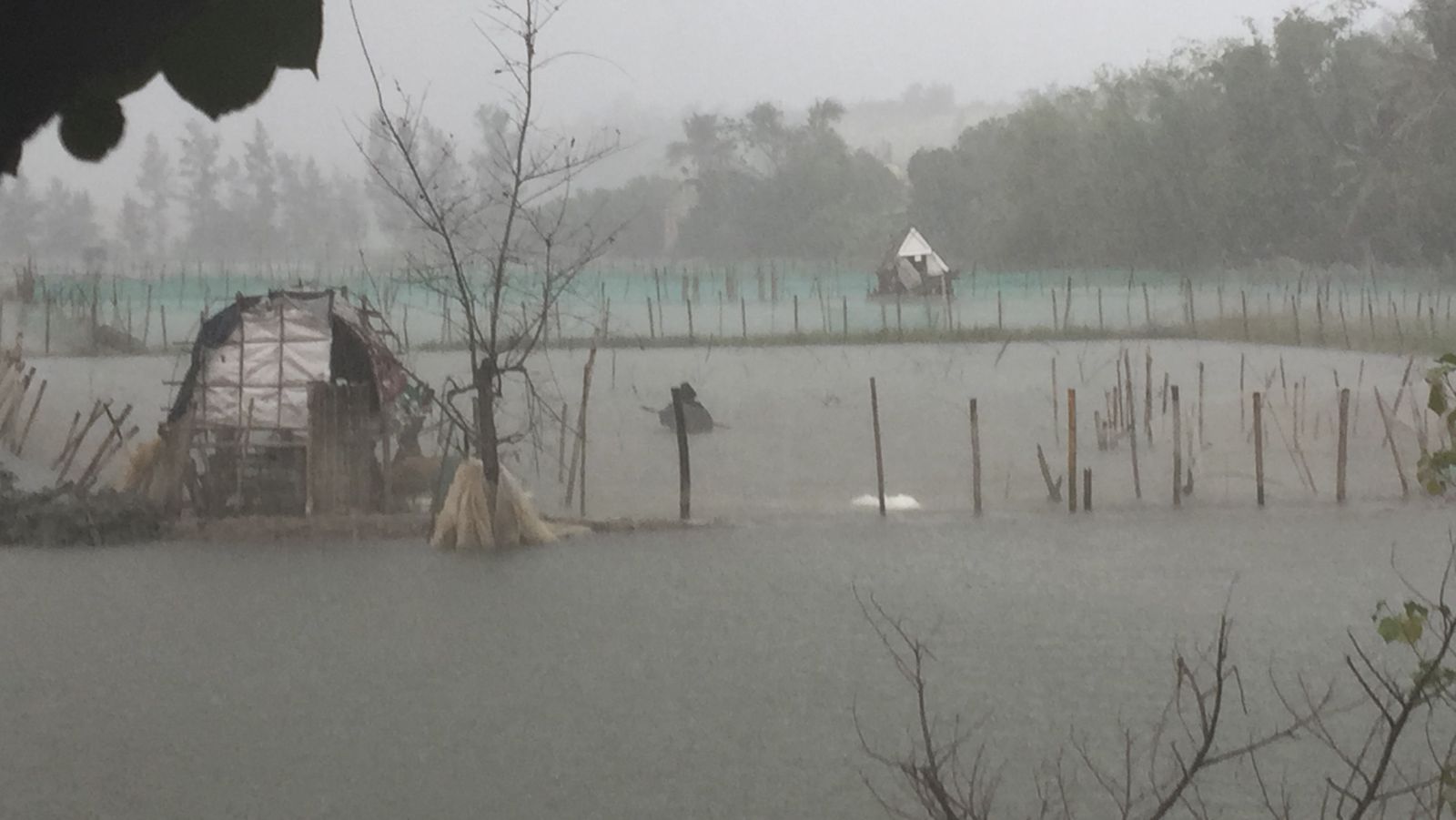 Các hộ nuôi cá lồng tại xã Hải Dương (TX Hương Trà) đội mưa kiểm tra cá.