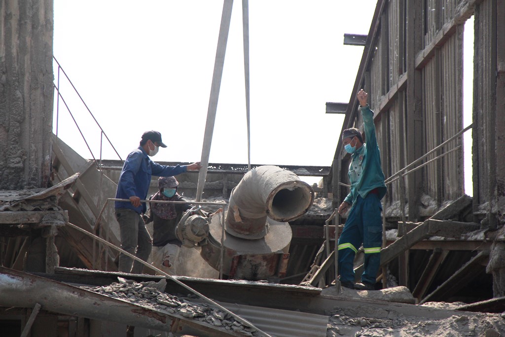 Công nhân Nhà máy xi măng Long Thọ trong lần hạ giải  nhà máy vào tháng 4/2021. Ảnh: P.T