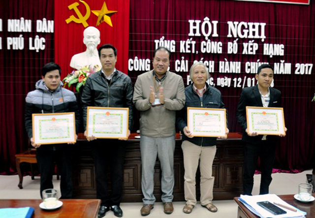 Trao khen thưởng cho các cơ quan có thành tích cao trong cải cách hành chính ở Phú Lộc năm 2017