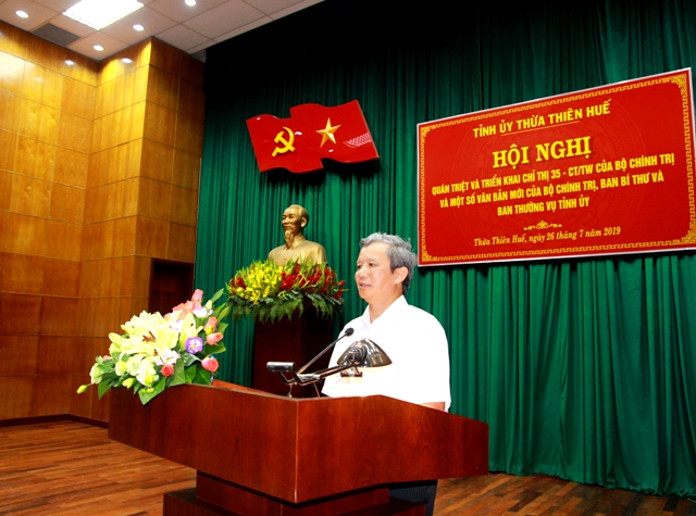 Hội nghị nghe Bí thư Tỉnh ủy Lê Trường Lưu triển khai Chỉ thị 35 - CT/TW, ngày 30/5/2019 của Bộ Chính trị về Đại hội Đảng bộ các cấp tiến tới Đại hội đại biểu toàn quốc lần thứ XIII của Đảng; Chỉ thị 38 - CT/TU, ngày 18/7/2019 của Ban Thường vụ Tỉnh ủy về Đại hội Đảng bộ các cấp tiến tới Đại hội đại biểu Đảng bộ tỉnh lần thứ XVI và Đại hội đại biểu toàn quốc lần thứ XIII.