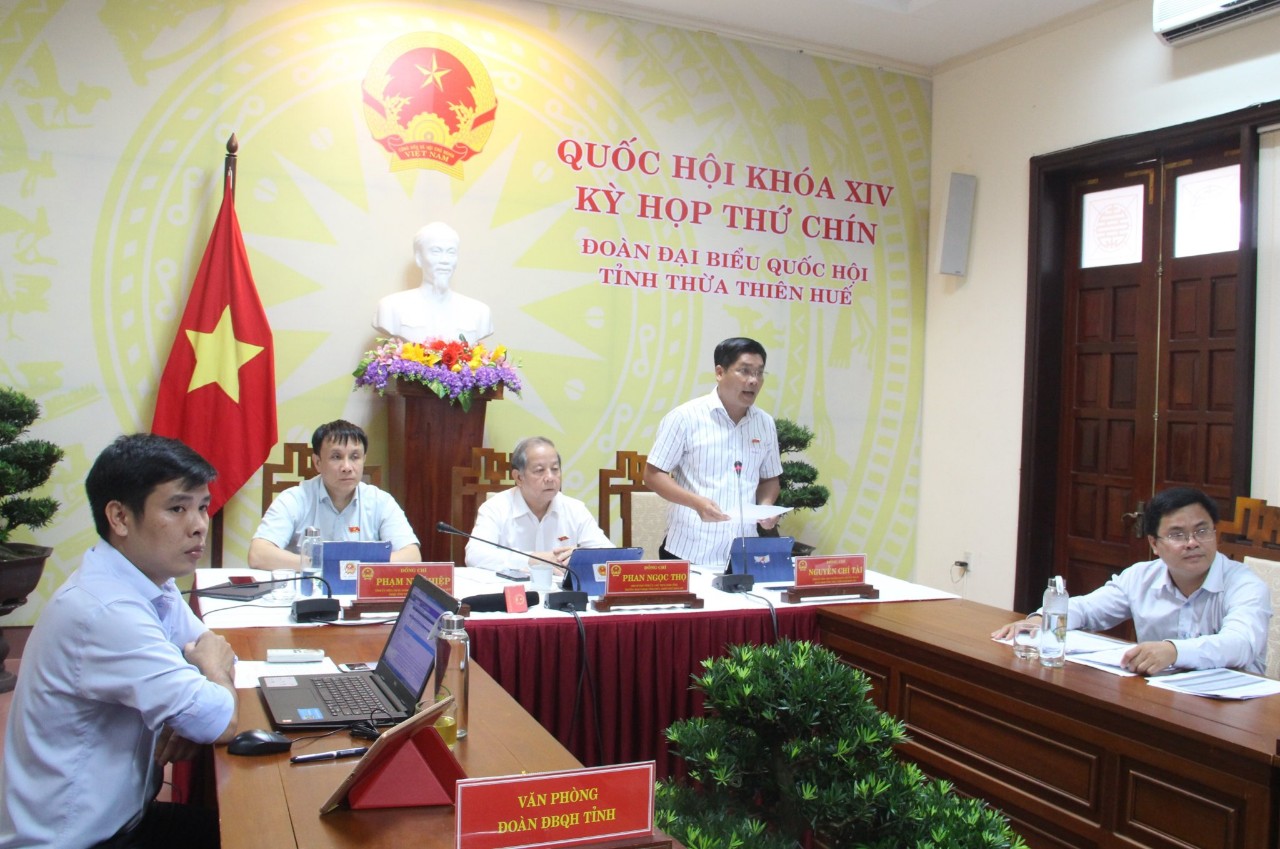 Đoàn Đại biểu Quốc hội tỉnh Thừa Thiên Huế tại một phiên họp trực tuyến của Quốc hội