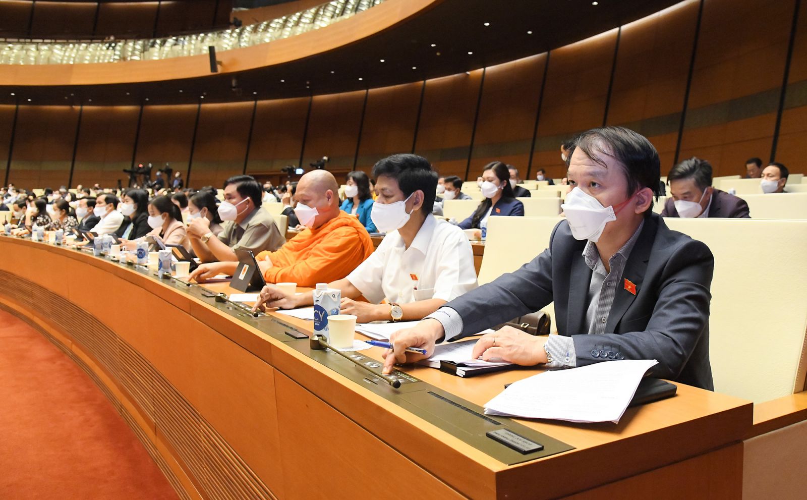 Đại biểu Quốc hội nhấn nút thông qua Nghị quyết về thí điểm một số cơ chế, chính sách đặc thù phát triển tỉnh Thừa Thiên Huế. Ảnh: ĐBQH cung cấp