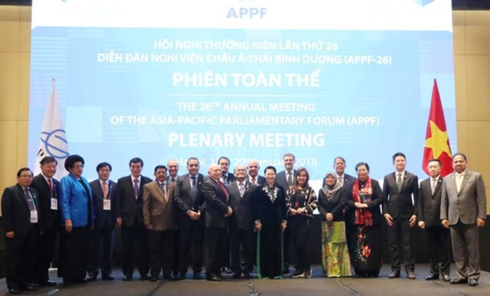 Mở đầu cho hoạt động đối ngoại Quốc hội 2018 đó là sự kiện Quốc hội nước ta đăng cai tổ chức Hội nghị Diễn đàn Nghị viện Châu Á - Thái Bình Dương lần thứ 26 (APPF26), diễn ra từ 18 đến 21/1/2018. Theo Chủ nhiệm Ủy ban Đối ngoại Nguyễn Văn Giàu, đây là diễn đàn tổ chức tại Việt Nam rất có hậu và thành công. Thành công nhất là diễn đàn có số lượng đại biểu các nghị viện đến Việt Nam đông đảo nhất từ trước tới nay, có đến 356 đại biểu quốc tế và 22 đoàn. Trong 22 đoàn nghị viện quốc tế có 17 trưởng đoàn là Chủ tịch Quốc hội và Phó chủ tịch Quốc hội.