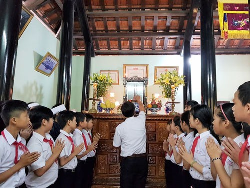 Các em học sinh đến viếng tại nhà thờ dòng họ Đại tướng Lê Đức Anh ở quê nhà Thừa Thiên - Huế