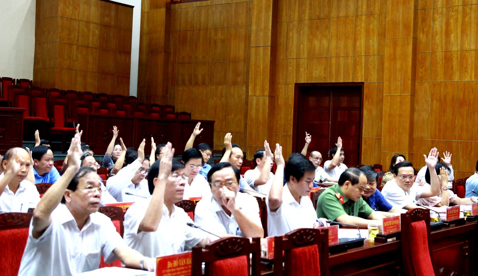 Các đại biểu tham dự Hội nghị Tỉnh ủy biểu quyết thông qua các chương trình