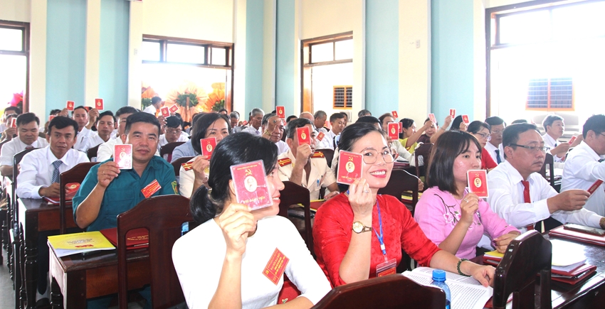 | Biểu quyết thông qua những nội dung tại Đại hội đại biểu Đảng bộ xã Đan Điền (Ảnh: Anh Phong) |