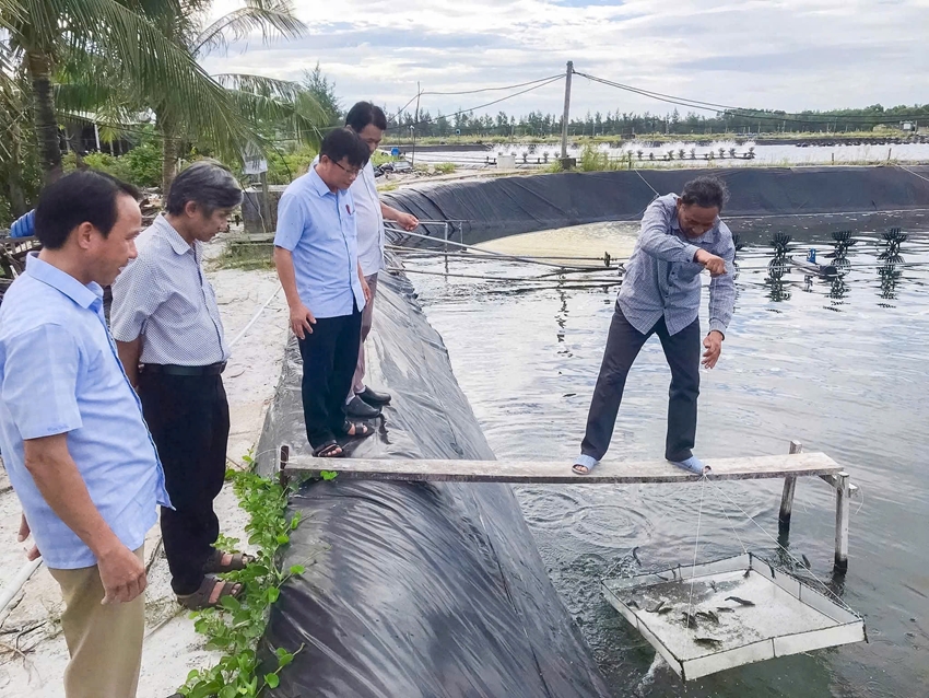 | Mô hình nuôi tôm sú gắn với liên kết tiêu thụ sản phẩm tại xã Vinh Lộc (Ảnh: Hữu Phúc) |