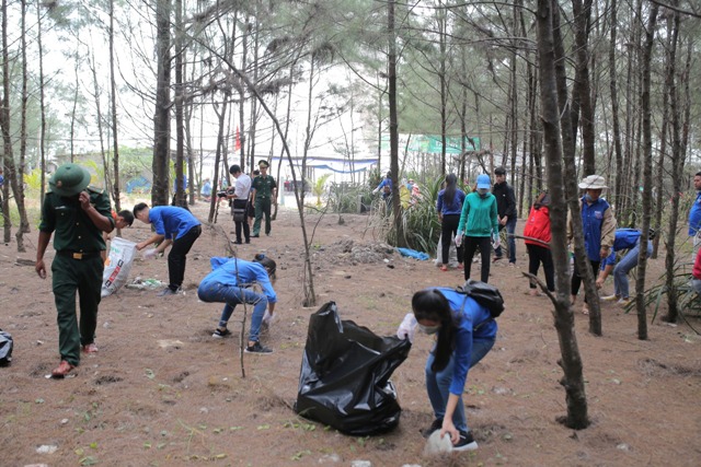 Hơn 100 cán bộ, đoàn viên, sinh viên đã triển khai làm vệ sinh môi trường, dọn rác thải nhựa, túi nilon tại biển Vinh Hải (huyện Phú Lộc) đồng thời trồng 400 cây xanh chống xói mòn và sạt lở bờ biển khu vực biển xã Vinh Hải.