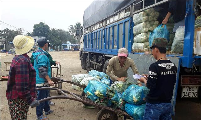 | Vận chuyển rau củ quả từ các tỉnh phía Bắc về chợ đầu mối Phú Hậu tiêu thụ trong ngày 15/2 |