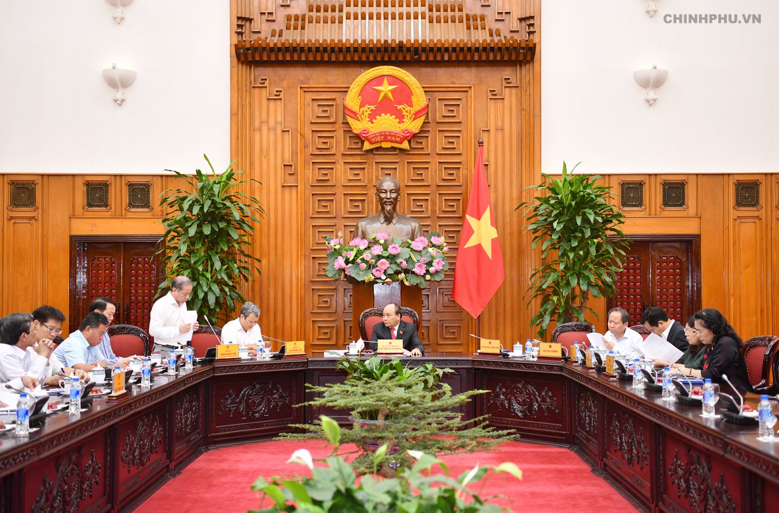 Thủ tướng nghe chủ tịch UBND tỉnh - Phan Ngọc Thọ báo cáo về Đề án di dời dân cư khỏi di tích Kinh thành Huế. Ảnh: VGP/Quang Hiếu