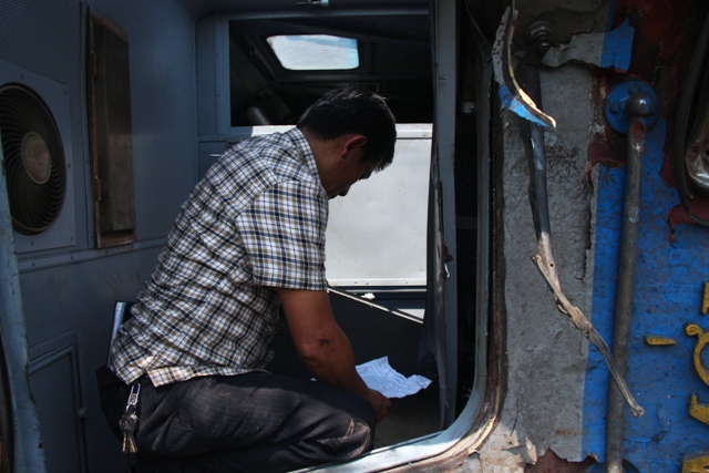 Một thành viên đang khám nghiệm hiện trường bên trong đầu tàu